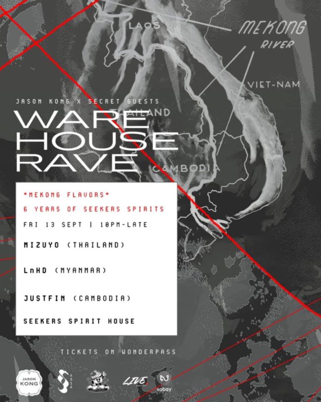 [The Warehouse Rave in Cambodia]They celebrate 6 years of Seekers Spirits — blending the flavors of the mighty Mekong River with a lineup from 3 djs: Myanmar, Thailand, and Cambodia. Headliner is DJ Mizuyo, one of the most prolific talents in Thailand known for her her global house aesthetic and over 25 years of experience…